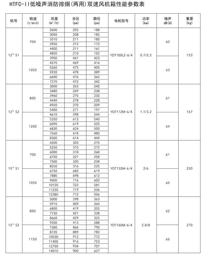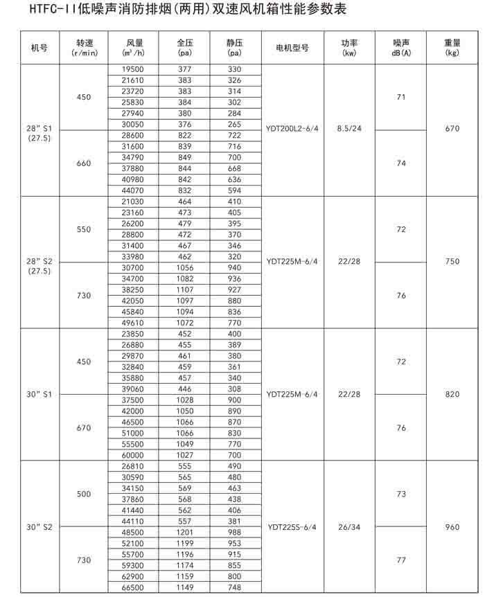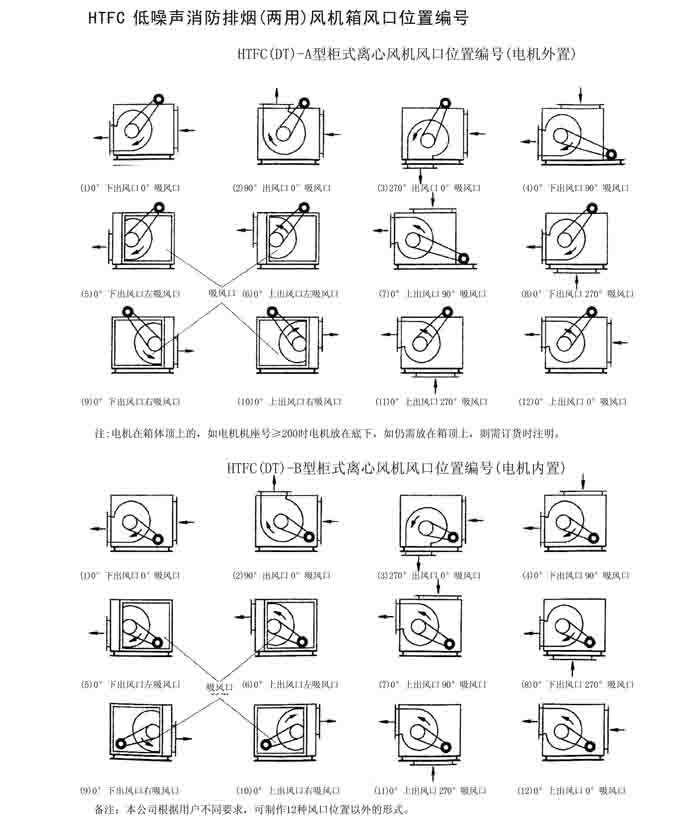 一、HTFC(DT)-I、II、V 系列低噪聲消防排煙(兩用)風機箱