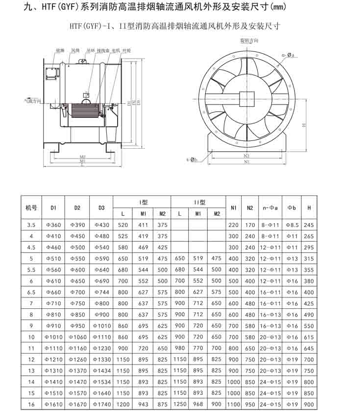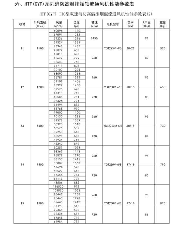 一、HTF(GYF)-I、II、III、D、G、IIG 系列消防排煙軸流風(fēng)機