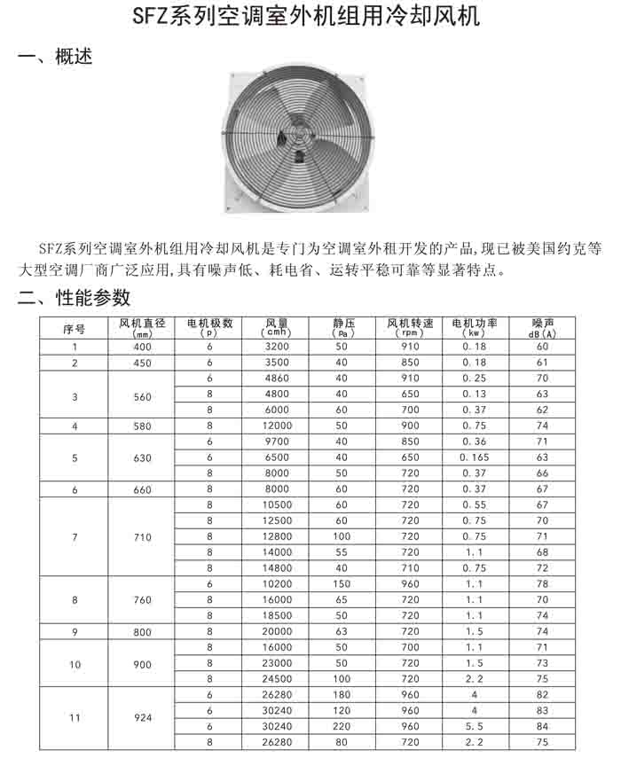 十、SFZ 系列空調室外機組冷卻風機