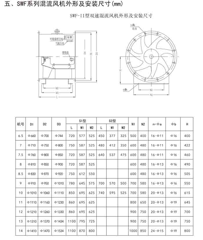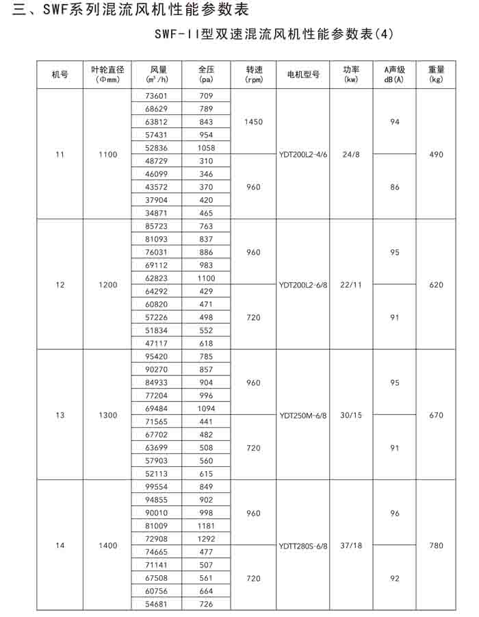 · 二、SWF(HLF、GXF)-I、II、H 系列高效混流風(fēng)機(jī)