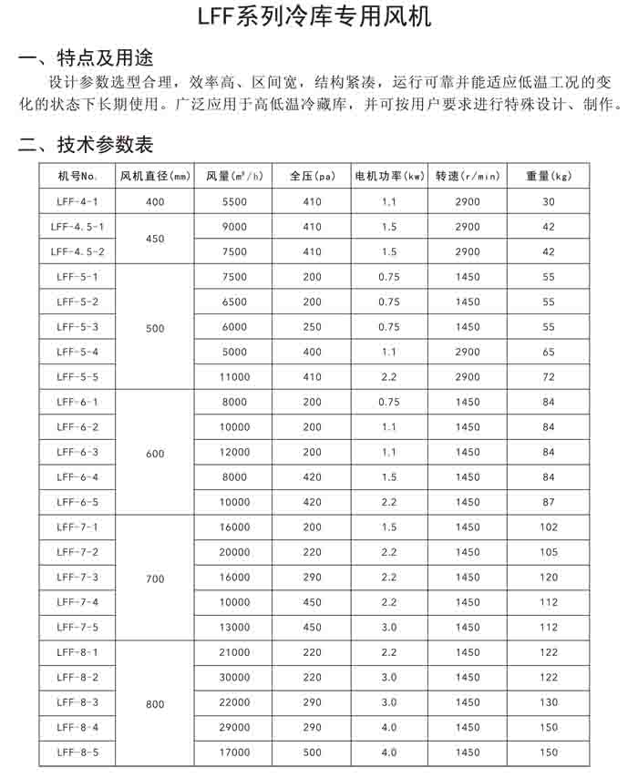 八、LFF 系列冷庫(kù)專(zhuān)用風(fēng)機(jī)
